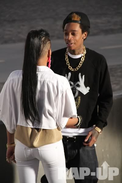 Rapper Wiz Khalifa is shooting a video for his latest single "Roll Up" (sigh...Khalifa with the subliminal messages) and it stars Bad Boy chick Cassie.  And I have to saw she looks great in the photos.