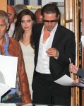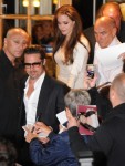 Here are some photos from the Tree of Life photo call in Cannes, just hours ago, as promised. Brad did the photo call with his costar and on-screen wife, Jessica Chastain, who is currently one of the It Girls being cast in EVERYTHING. She's 30 years old, but she seems older to me. And I dislike this shade of red on a girl with that shade of red hair. As for Brad… he took note of Jon Hamm's all-white ensemble and raised the Hamm Dong one salt-and-pepper mullet. Brad's Cannes ensembles are always… well, they're always interesting. There was that one year he did a photo call in a Tom Ford ascot. That was memorable. Brad loves his fashion, and I suspect he's a clotheshorse. So why this baggy suit and mullet? It makes him look like a low-level mob enforcer on holiday.