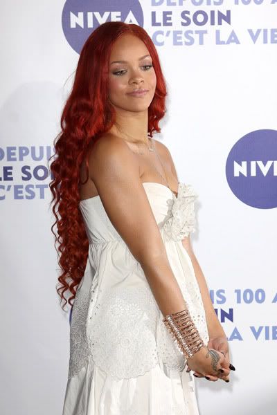 Rihanna unbraided her ponytail and went for long red tresses last night for a performance at a swanky hotel in Paris.  See pics of Rihanna performing for NIVEA's 100th anniversary inside.