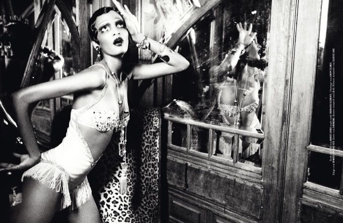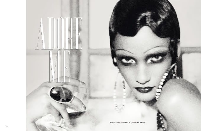 For TUSH Magazine, Rose Cordero stars in "Adore Me" (a tribute to Josephine Baker). With bedazzled head pieces, dark eye makeup and wavy hair, the model takes a page out of the 1920s.