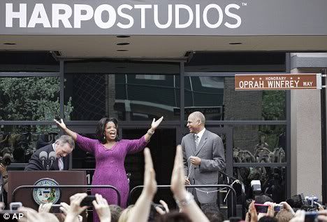 Yesterday, the mayor of Chicago, Richard M. Daley changed the name of the 100 block of North Carpenter Ave to Oprah Winfrey Way. HARPO Studios, incidentally, now sits on Oprah Winfrey Way. During the ceremony, Oprah said,