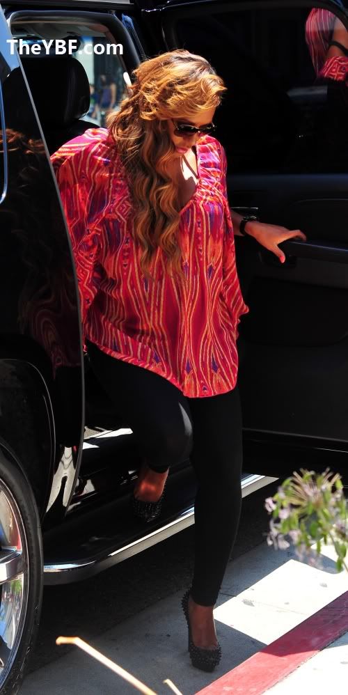And in California..... Reality tv star Mel B was spotted out and about in L.A. looking fabulous in her Louboutin spiked pumps and colorful tunic.