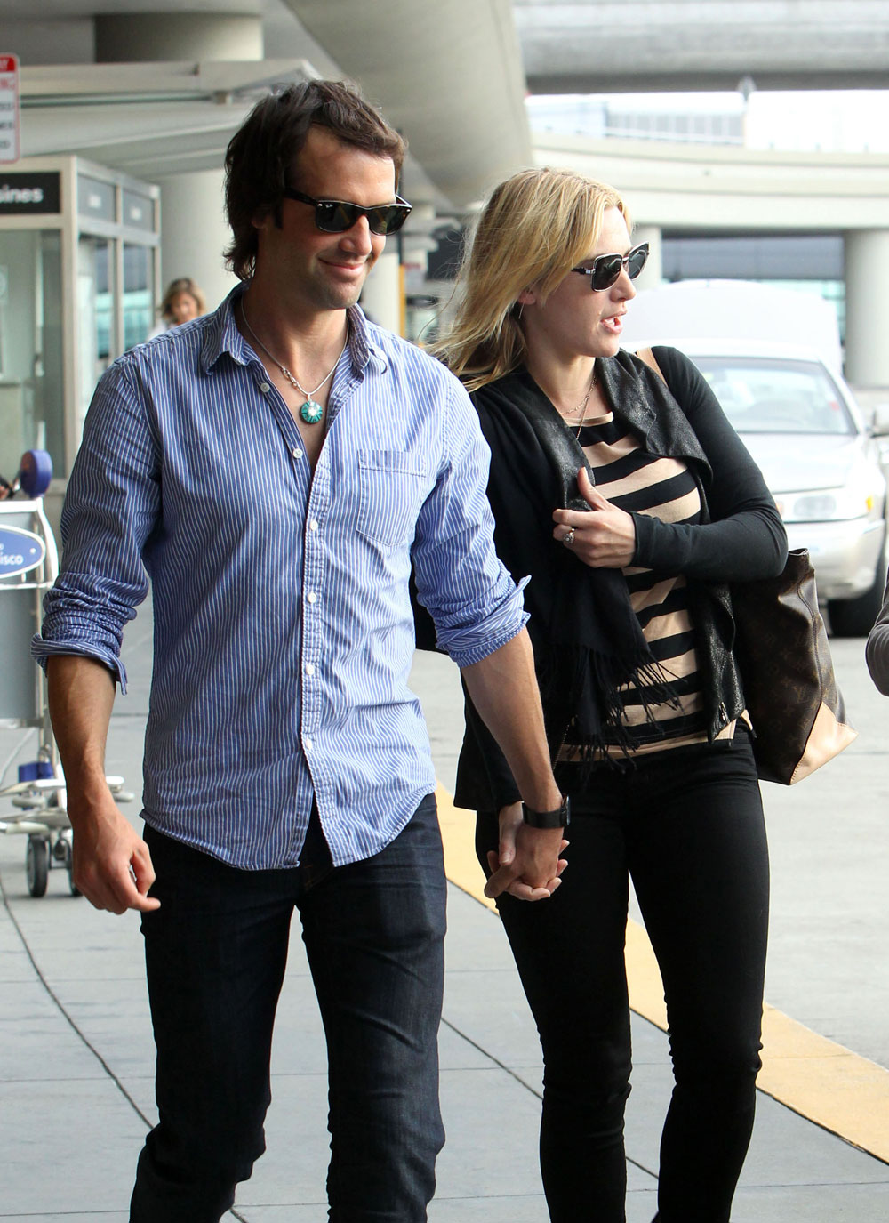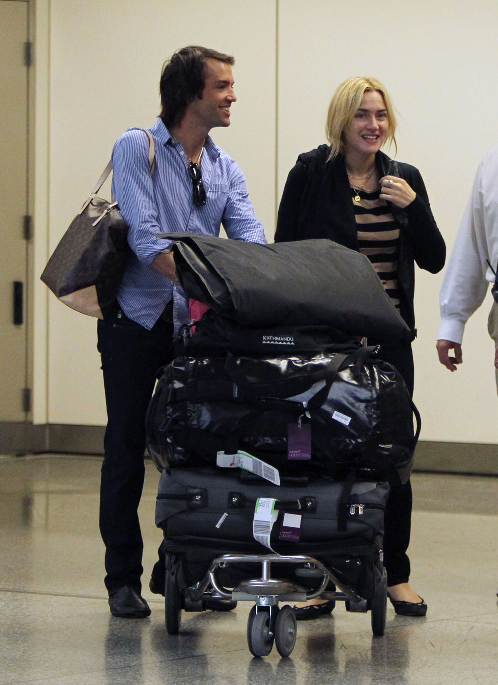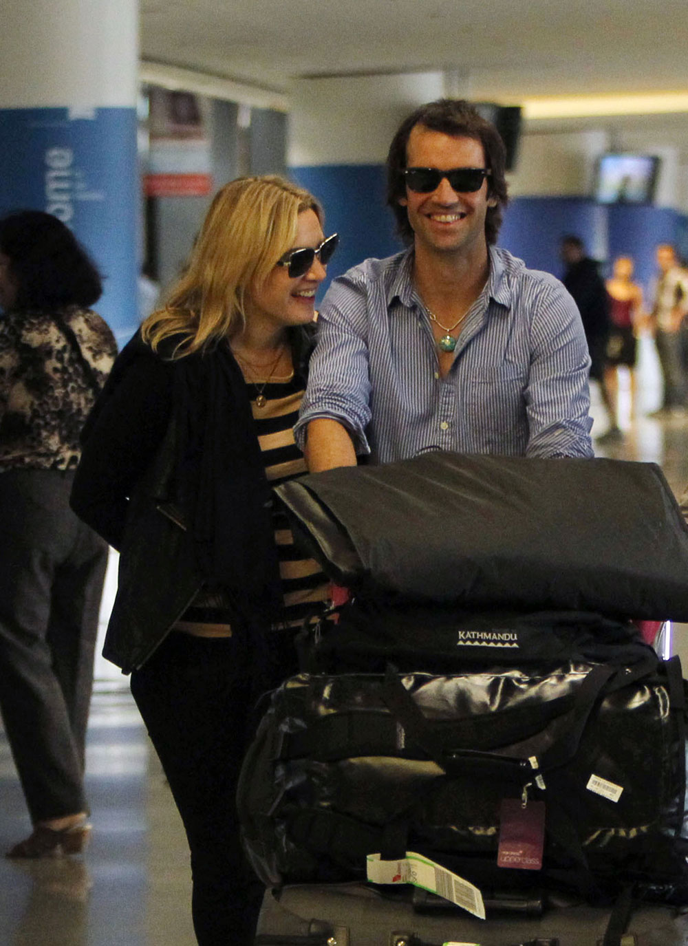 [From AP via Boston.com] Well I guess they’ll go into space eventually. I’m predicting 2015 even though the spacecraft is supposedly ready at this point. Kate and Rocky will be broken up by then, but maybe she’ll score tickets to the maiden voyage before that happens. $200k is nothing to scoff at. And here’s Kate and Rocky at the real airport in San Francisco over the weekend. He carries her bags, I’ll give him that. Photo credit: WENN and Fame |